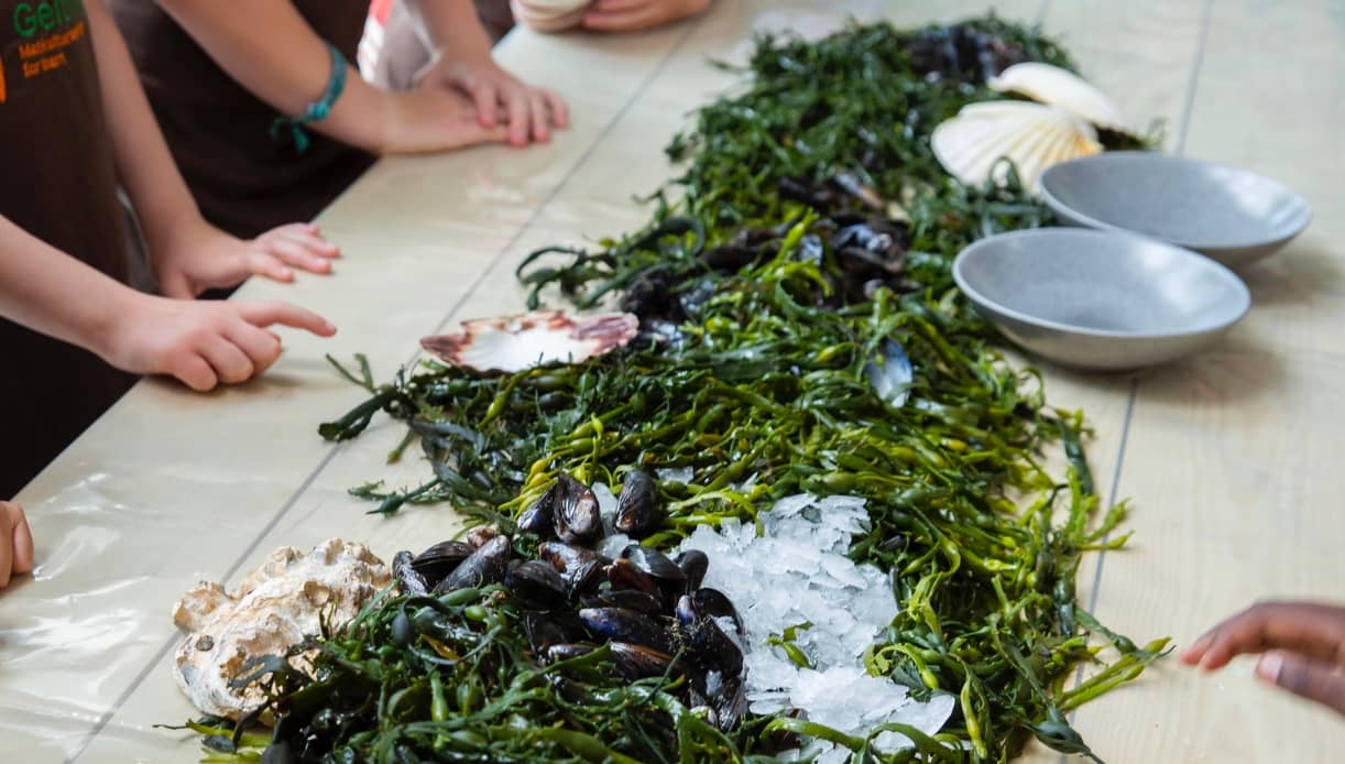 Smak på havet – hjemmeI vinterferien er det full rulle på tunet på Geitmyra gård. Hundrevis av barnehagebarn kommer innom for å bli kjent med havet: De går rebusløype, utforsker tang og tare, studerer fisk, lærer om blåskjell – og smaker på både bakt fisk og blåskjell. Hos oss begynner læringen i hendene. Når barn får undersøke, kjenne og utforske råvarer selv, blir de tryggere, mer nysgjerrige og får lyst til å smake. Men dere trenger ikke bo i nærheten av et Geitmyrasenter for å bli med. Mange av aktivitetene kan dere gjøre hjemme, på kjøkkenet eller ute. Blåskjell er noe av det billigste og beste vi kan få fra havet. I tillegg er det en fantastisk skapning: Ett eneste blåskjell kan filtrere opptil tre liter sjøvann i timen. Mange barn liker blåskjell – og vi bruker det ofte på Geitmyra. Det morsomste? Å sjekke om de lever. Blåskjell passer til nesten alt: i pasta, på bål, på grill, i suppe – eller bare dampet eller bakt med olje, hvitløk og persille. Sjekk ut